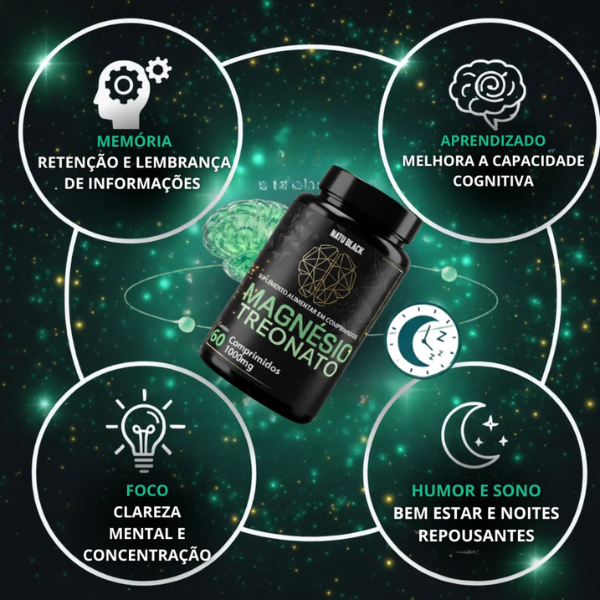 Treonato de Magnésio Treonina Original 1000 mg Fórmula Avançada Alta Performance